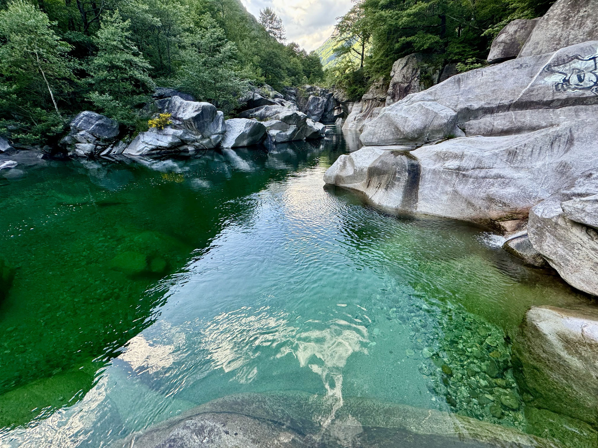 Flusstauchen im Verzascatal im Tessin, oberhalb des Lago Maggiore, ist ein ganz besonderes Taucherlebnis. Über Millionen von Jahren hat der gleichnamige Bergfluss die Felsen geformt und glatt geschliffen. Besonders beeindruckend wird es, wenn die Sonne gegen Mittag das Tal erreicht und das Wasser in einem leuchtenden Smaragdgrün erstrahlt – ein Traum.
